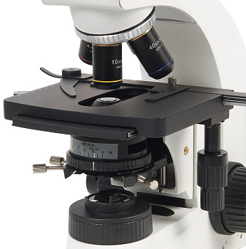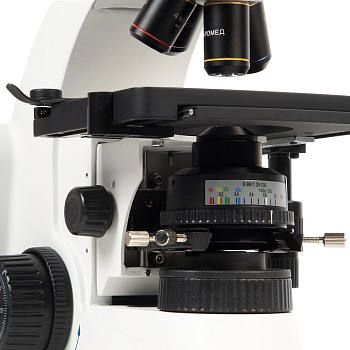 - Новый механизм фокусировки обеспечивает более точную настройку, что особо важно при работе с объективами большого увеличения. Рукоятка тонкой фокусировки имеет шкалу с ценой деления 1 мкм. Перемещение столика при повороте рукоятки тонкой фокусировки на 360° – 0,1 мм.