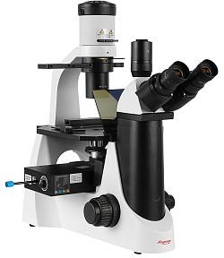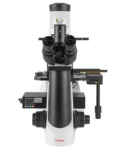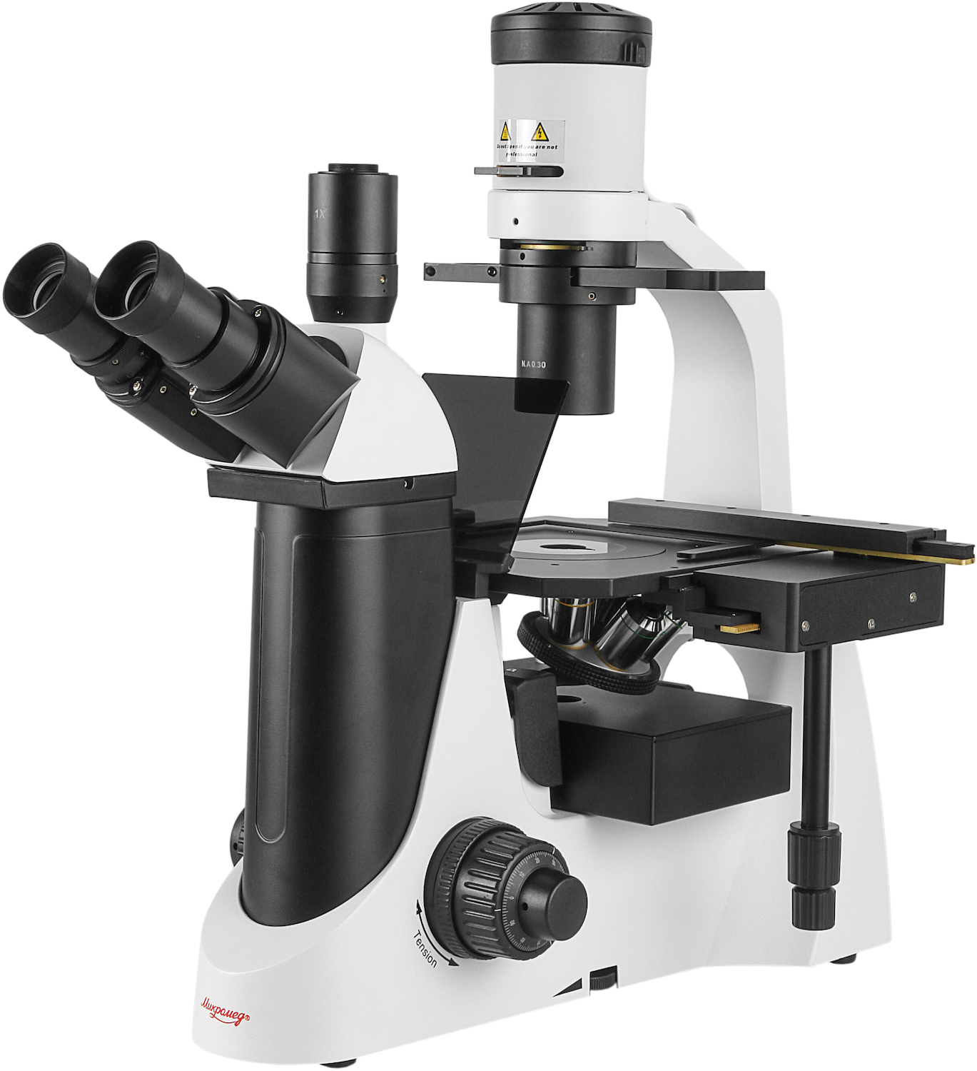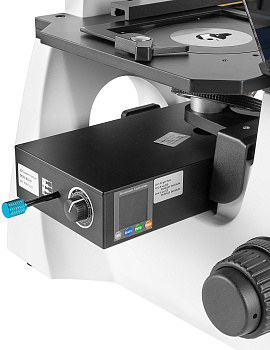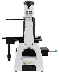 - Инвертированный штатив со встроенным в основание блоком питания, неподвижным предметным столиком, осветителем проходящего света и механизмом фокусировки