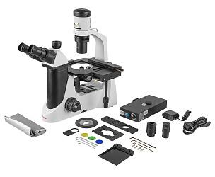 Микроскоп построен по оптической схеме «бесконечность» и включает оптическую головку с окулярными тубусами и каналом визуализации, объективы и конденсорный осветитель проходящего света, предназначенный как для работы методом светлого поля, так и методом фазового контраста. Также в оптическую систему входит светодиодный модуль осветителя отраженного света с блоками люминесцентных фильтров.