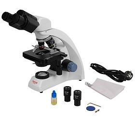 Микроскоп спроектирован на длину тубуса 160 мм. Оптическая система микроскопа включает в себя визуальную насадку с окулярным тубусом, объективы на револьверном устройстве, коллектор и конденсор с откидным держателем светофильтров. В комплект микроскопа входят объективы с ахроматической коррекцией 4х, 10х, 40х и 100х OIL для исследования с масляной иммерсией.