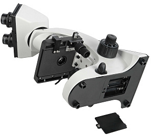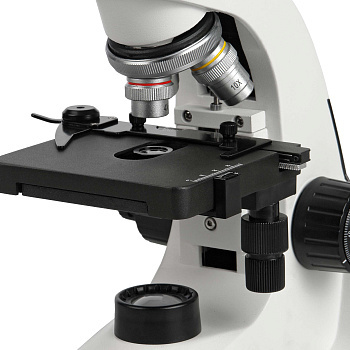 Микроскоп оснащен осветителями проходящего и отраженного света. Осветитель проходящего света включает в себя коллектор, светодиод белого спектра и конденсор. Упрощенная конструкция конденсорного осветителя удобна для начинающих: такой осветитель не нуждается ни в центрировке, ни в регулировке диафрагмы.