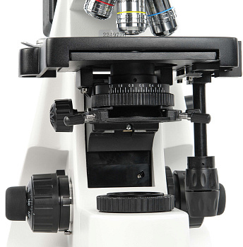 - Механизм блокировки грубой фокусировки для быстрой настройки микроскопа при смене препарата. Регулировка жесткости хода грубой фокусировки